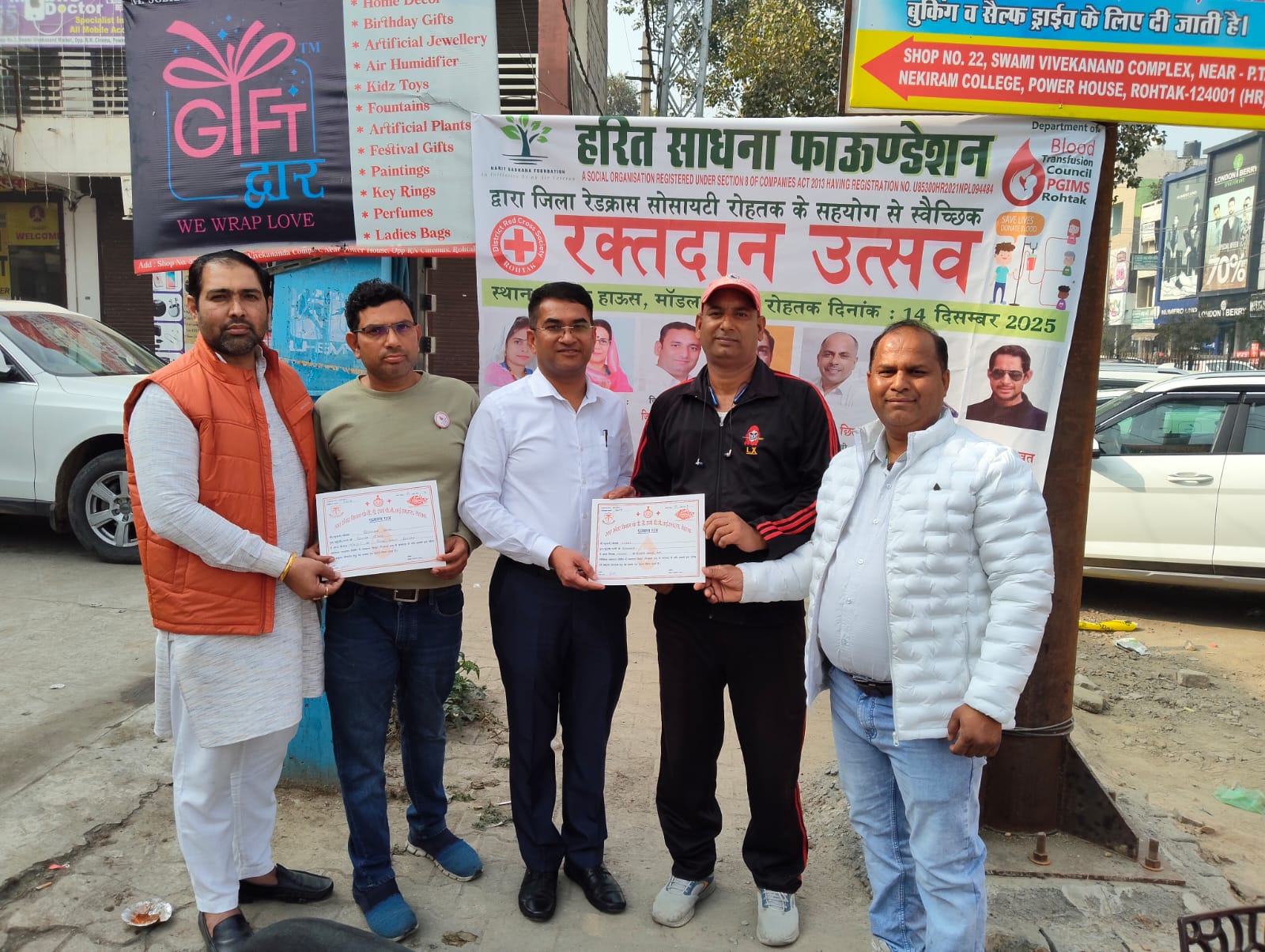 On 14th December 2025, Harit Sadhana Foundation conducted a Blood Donation Camp at Power House, Rohtak, as part of its ongoing social responsibility initiatives. The camp witnessed enthusiastic participation from volunteers and community members, resulting in the successful collection of 41 units of blood.